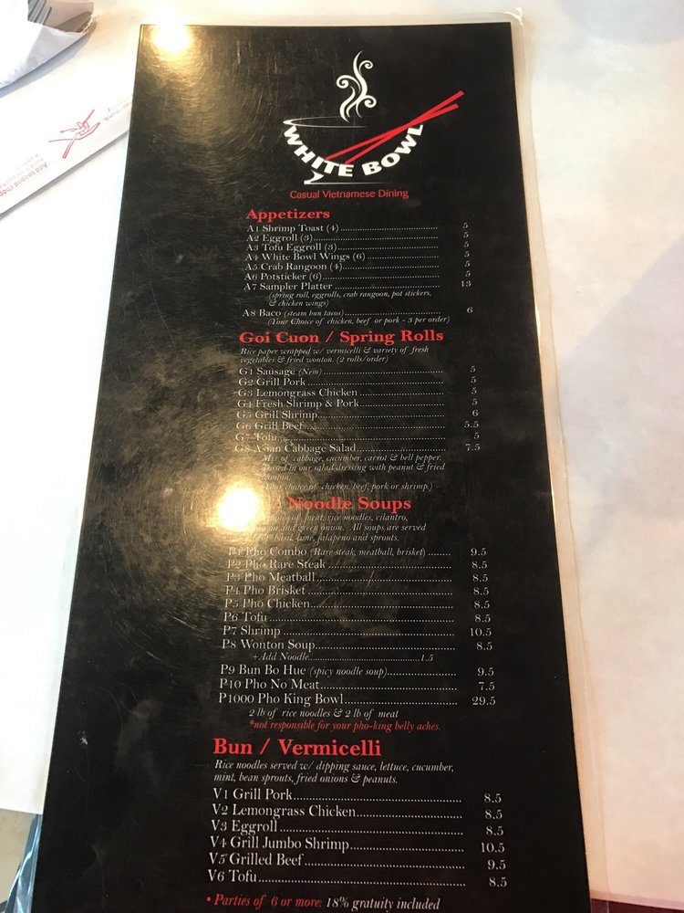 White Bowl Menu (Update 2025)